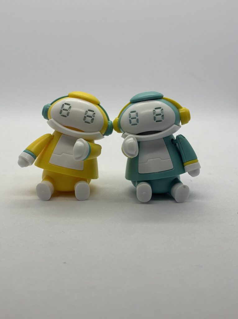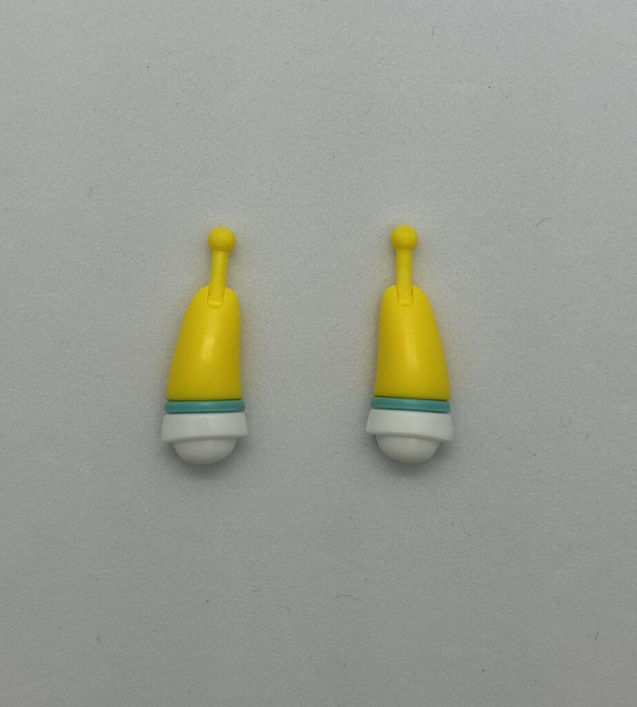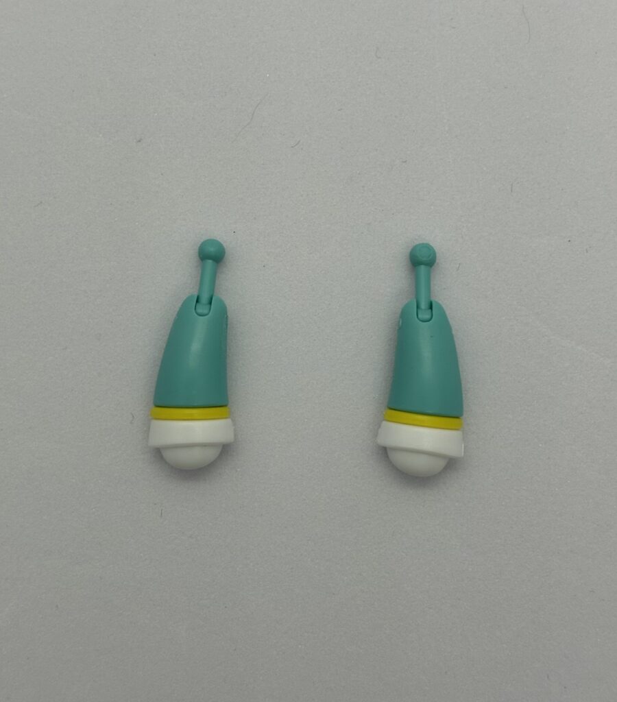 この子たちは、頭のトップとヘッドホン(?)、それと手と足のリングを差し替えて配色を変えることができるのよね。