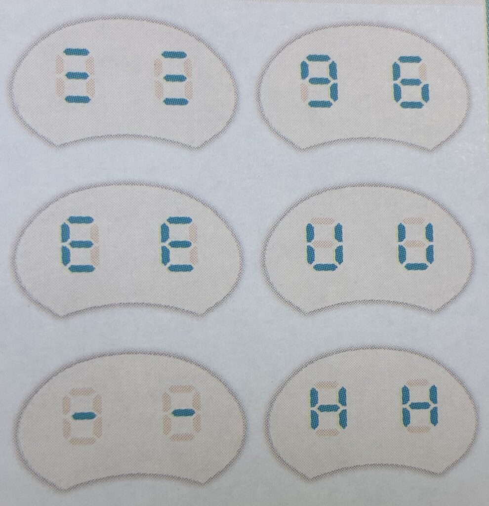 デジタル時計みたいな目だけど、塗り方でいろいろな表情になるのよね。